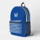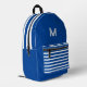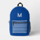 Deep blue&white stripes -monogrammed Printed Backpack