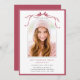 Invite friends and family to celebrate the graduate with this elegant invitation, featuring a deep blush ribbon bow with a arch photo.