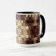 This mug features a muted, rippling brown and beige kaleidoscopic image that gives the impression of a Southwest Native pattern.