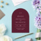 Classic style arch acrylic wedding save the date featuring a simple yet elegant design in a deep burgundy color that is perfect for a fall wedding or a winter / Christmas wedding.