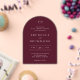 Classic style arch acrylic wedding invitation featuring a simple yet elegant design in a deep burgundy color that is perfect for a fall wedding or a winter / Christmas wedding.