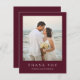 Classic style wedding thank you card featuring a simple yet elegant design in a deep burgundy color that is perfect for a fall wedding or a winter / Christmas wedding. Use the template to easily add your favorite photo.