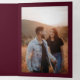 Classic style all in one tri-fold wedding invitation featuring a simple yet elegant design in a deep burgundy color that is perfect for a fall wedding or a winter / Christmas wedding. Use the template to add photos and a QR code or remove either in the design editing tool.
