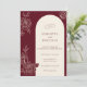 Invite loved ones into a romantic, candlelit celebration with this deep burgundy wedding invitation, where sketched florals frame a soft arch spotlighting your names and wedding details. The contrast of rich wine tones and warm ivory creates an intimate, storybook feel that suits elegant, moody Fall celebrations. On the back, an arched photo window and brush‑stroke initials area let you personalize the card with your engagement or couple portrait for a polished, keepsake‑style invite.