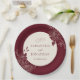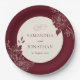 Deep Burgundy Floral Ivory Circle Wedding Paper Plate
