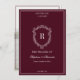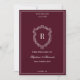 The front features a rich deep burgundy background framed with delicate ivory double-line borders, showcasing a stately monogram crest at the center. Formal serif typography paired with elegant script lettering creates a balanced, heirloom-inspired composition that feels polished, restrained, and effortlessly elevated. The classic layout reflects the coveted old money aesthetic—confident, timeless, and never trend-driven.