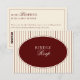 Deep Burgundy Ivory Stripes Oval Old Money RSVP Card