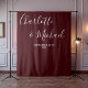 Create a stunning focal point for your wedding with our Deep Burgundy Script Minimalist Wedding Backdrop. This backdrop can be customized with the names of the bride and groom, as well as the wedding date. The deep burgundy color and elegant script font add a touch of sophistication to your special day.
