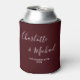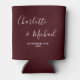 Deep Burgundy Script Minimalist Wedding Can Cooler