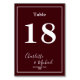Looking for a unique way to guide guests to their seats? Our Deep Burgundy Script Minimalist Wedding Table Number is the perfect solution. With custom details featuring the names of the bride and groom, the event date, and the table number, this table number will add a special touch to your celebration.