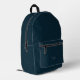 This backpack features a lighter grey personalised name on a deep dark blue background.