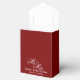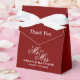 Deep dark burgundy red wedding favour boxes with white bow. Perfect for thanking guests with a sweet treat or gift. Classy typography template for couple getting married. Change quantity to get the cheap bulk price. Beautiful formal template for high end luxury wedding. Personalise with MR and MRS name. Adjust HEX colour to match your colour scheme.
