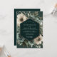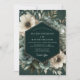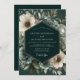 A rich tapestry of deep emerald hues envelops this design, showcasing a dramatic floral arrangement. Creamy white blossoms and muted teal foliage intermingle, creating an atmosphere of opulent romance and sophisticated charm. The artwork evokes a feeling of timeless elegance.