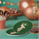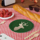 A golden deer head silhouette brings a modern touch of shine to deep forest green for festive feeling.