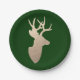 Deep Forest Green and Golden Deer Silhouette Paper Plate