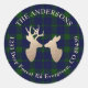 Deep Forest Plaid Golden Deer Address Classic Round Sticker