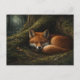 A peaceful red fox sleeps beneath the roots of an ancient forest tree in this quiet woodland scene. Moss, mushrooms, and soft forest light create a calm and cozy moment deep in the woods.