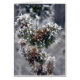 blue and green dried flower heads, seed pods all covered in icy spike and frost