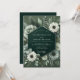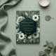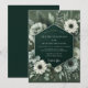 This design features a dramatic deep green backdrop, densely adorned with lush botanical elements. Delicate white blossoms and varied foliage create a rich, opulent tapestry. The mood is sophisticated and deeply romantic, perfect for an elegant affair.