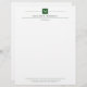 Professional letterhead in white with black fonts and your initial in white against a dark green square with thin lines framing your name, title, and contact information. Elegant and clean letterhead personalised with monogram, name, title, and contact info in a minimalist and timeless black, deep green, and white design. Manly timeless letterhead monogrammed and printed with your name and title.