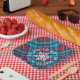 Deep Indigo, Aqua, Red & Shades of Blue Plaid Paper Plate