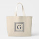 Deep Navy And White Square Border Monogram Large Tote Bag