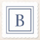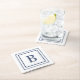 Deep Navy And White Square Border Monogram Paper Coaster