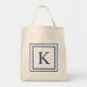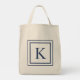 Deep Navy And White Square Border Monogram Tote Bag