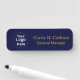 Elevate your professional image with this deep navy blue and gold colour name tag design. The rich navy backdrop paired with elegant gold accents creates a luxurious and high-end appearance suitable for corporate offices, hotels, events, and executive teams. Fully customisable with your name, title, and company details, this name tag ensures clear identification while reinforcing a refined brand presence. Ideal for businesses seeking a sophisticated and timeless look, it blends bold contrast with polished elegance for standout everyday use.
