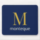 Deep Navy Gold Monogram Personalised Name Luxury Mouse Mat