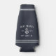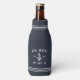 Upgrade your boat beverages with these awesome personalised bottle coolers in deep navy blue. Design features your boat name, ship's registry, and year established in white lettering, accented with an anchor illustration and rope stripe detailing at the top and bottom.