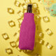 This bottle cooler has a geometric design of sort of flat-ended ovals repeating across the design in pink on a field of deep pink.