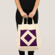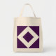 A geometric pattern with a purple diamond in the centre surrounded by a bold white diamond border on a deep purple background.
