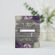 Deep Purple Floral Roses Rustic Lace Wedding RSVP Invitation