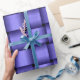 Our pretty weaved deep purple ribbon on your choice of size in wrapping paper.