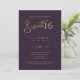Deep Purple SWEET 16 Modern Elegant Gold Birthday Invitation