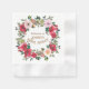 A beautiful bridal shower paper napkin in deep red and pink wreath watercolor roses and green leaves.