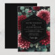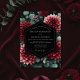 Rich, deep red dahlia blooms intertwine with dark, moody foliage in this striking design. The opulent floral arrangement evokes a sense of dark romance and natural elegance. This creates a sophisticated and dramatic aesthetic.