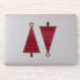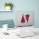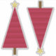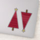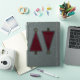 Sticker of a simplified modern take on a classic Christmas tree motif, deep red quilted satin damask