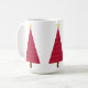 A simplified modern take on a classic Christmas tree motif coffee mug, deep red quilted satin damask