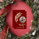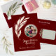 This soft elegant watercolor gold leaf design with rose gold foil, a ringed photo and a "Joyous Holiday" greetings on a deep red backgound makes an impactful and elegant holiday greeting card. The gold foil and simple watercolor leaf design is stylish and yet simple and the leave flow with graceful movement. You can add your own photo and a family or individual names.
