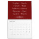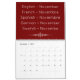 Organize your year with a global perspective using this sleek, multilingual custom wall calendar. Featuring the months of the year translated into English, French, Spanish, German, and Swahili, this deep red black-and-white design blends sophisticated typography with practical functionality. Perfect for language learners, world travelers, or anyone looking to add a touch of international flair to their home or office. Fully customizable to suit your personal style or gifting needs.