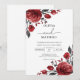 Elegant deep red blooms with dark foliage frame this romantic design. A sophisticated and lush botanical theme sets a mood of classic romance.