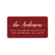 Deep Red Script Family return address label featuring a rich deep red background with white handwritten script for the family name and a clean, easy-to-read address below. The deeper tone offers a more refined look while still providing strong contrast for clear mailing details. Ideal for everyday mailing, holiday cards, moving announcements, and small business correspondence. Easily personalize with your details.
