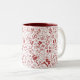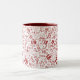A chic Eighteenth Birthday Two-tone Coffee Mug, with a pattern of number 18s in Deep Red on a White Background; from a digital design by Judy Adamson.