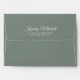 A deep sage green envelope with a text template on the back flap to personalise with your return address.