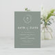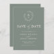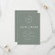 A tasteful and classic choice in wedding Save the Date cards, this design conveys a simple elegance in its text layout and classic style. A simple open laurel wreath of sketched leaves surrounds the monogram initial of the bride and groom. The elegant yet simple text template has a sample text template to personalise with your desired information.