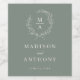 Deep Sage Simple Elegant Monogram Wedding Wine Label