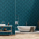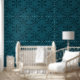 The design is of a floral line artwork presented in an elegant pattern on deep sea green blue colour. The design allows for customisation of the background colour to best match your space's colour palettes.