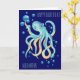 Deep Sea Octopus Blue Bubble Navy Birthday Card
